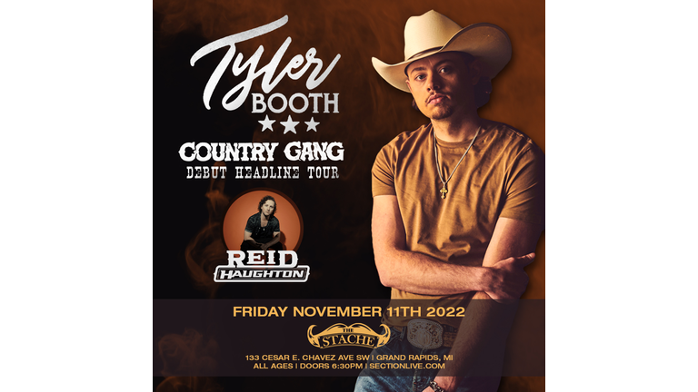 FRIDAY, NOVEMBER 11 Doors: 6:30pm // Show: 8pm $18 ADV / $20 DOS The Stache https://sectionlive.com/event/tyler-booth-country-gang-tour/